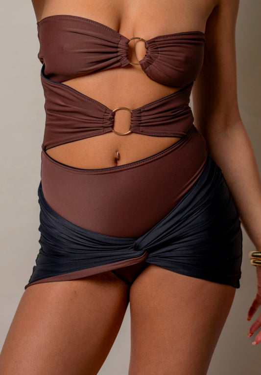 Shoreline Twist Reversible Sarong - Espresso/Black