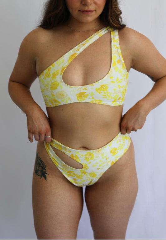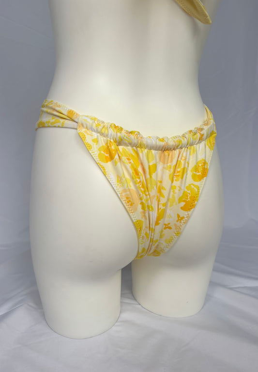 Sandy Cheeks Reversible Thong Cut Out Bikini Bottoms - Lemon Peony / Yellow